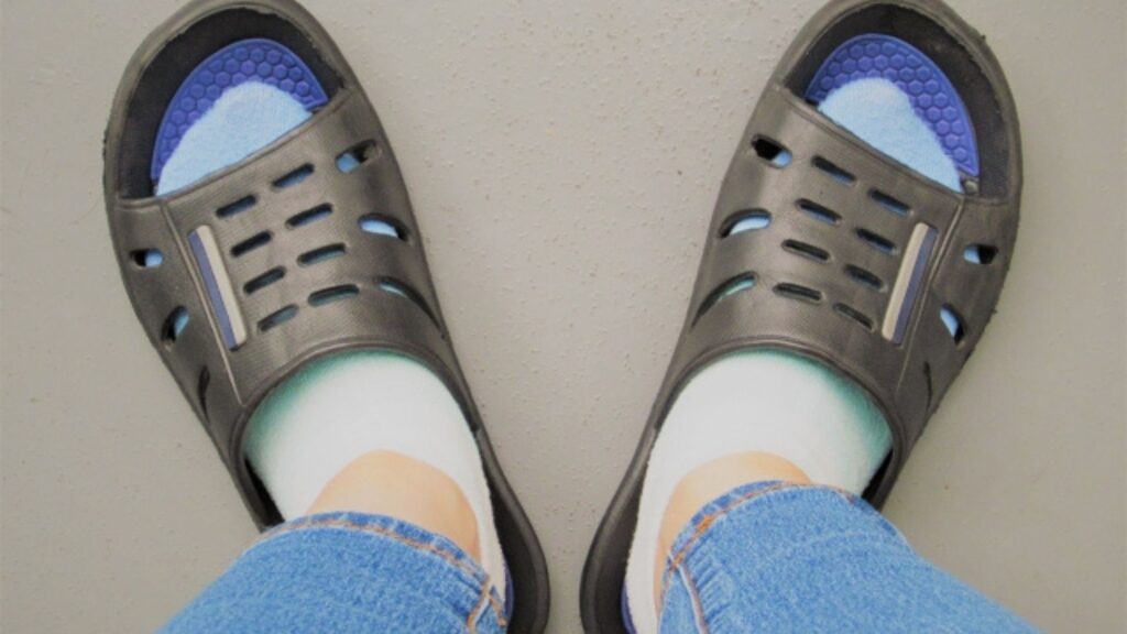 泊まることや長時間作業することが多く、スニーカーや靴を長く履いていると疲れますし、蒸れて臭くなってしまいます。